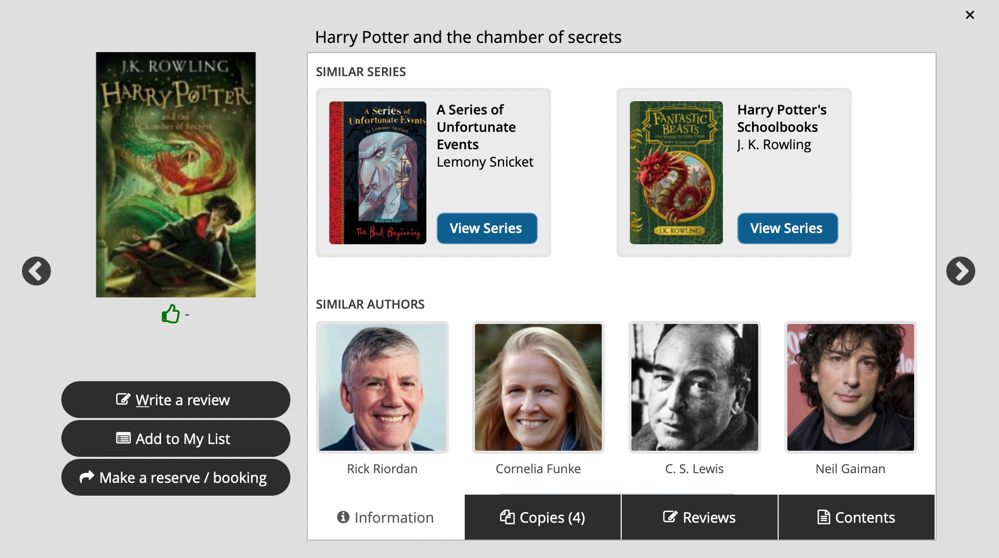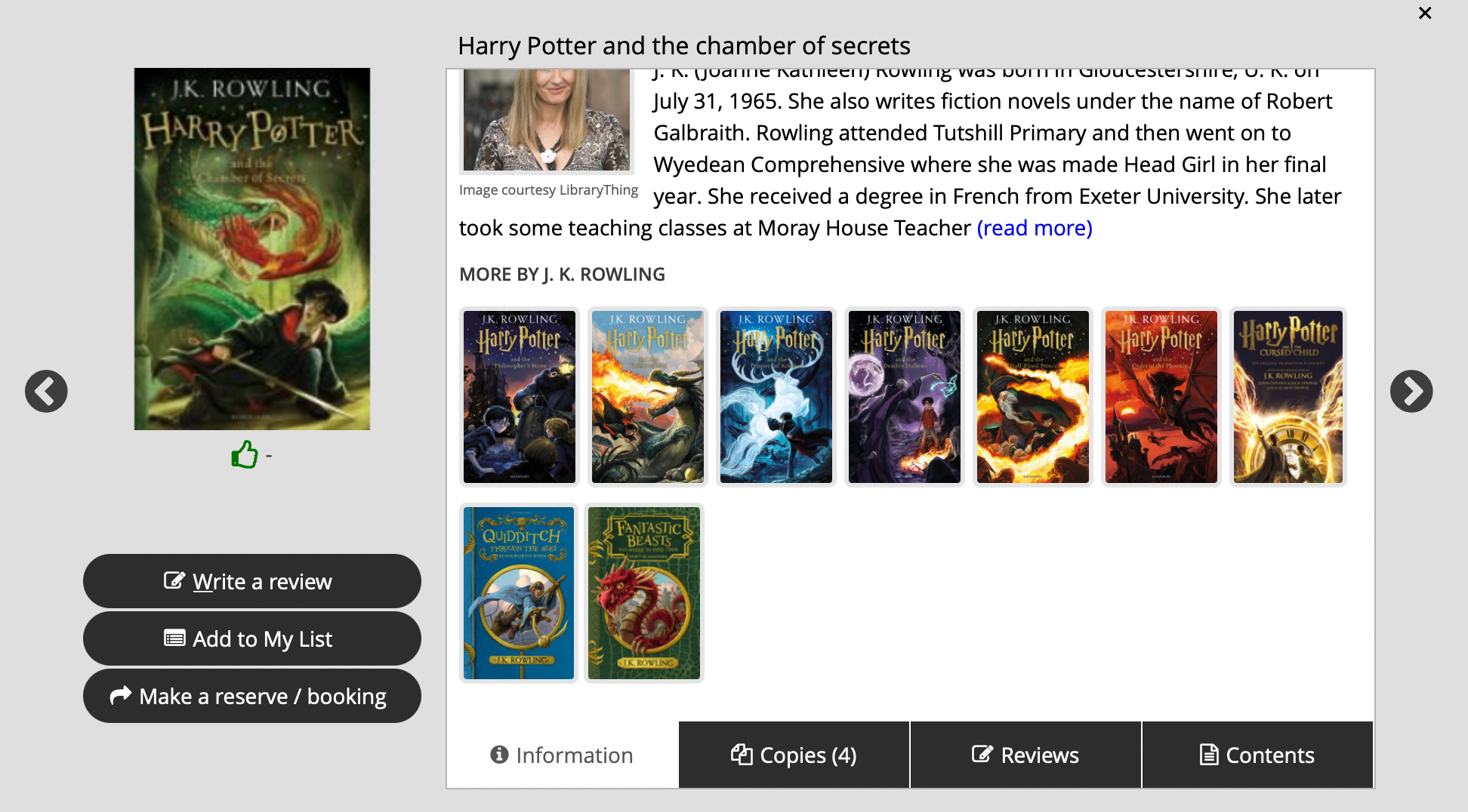• ALL the school library books (what is in stock, book information, about the author, professional reviews and student reviews).