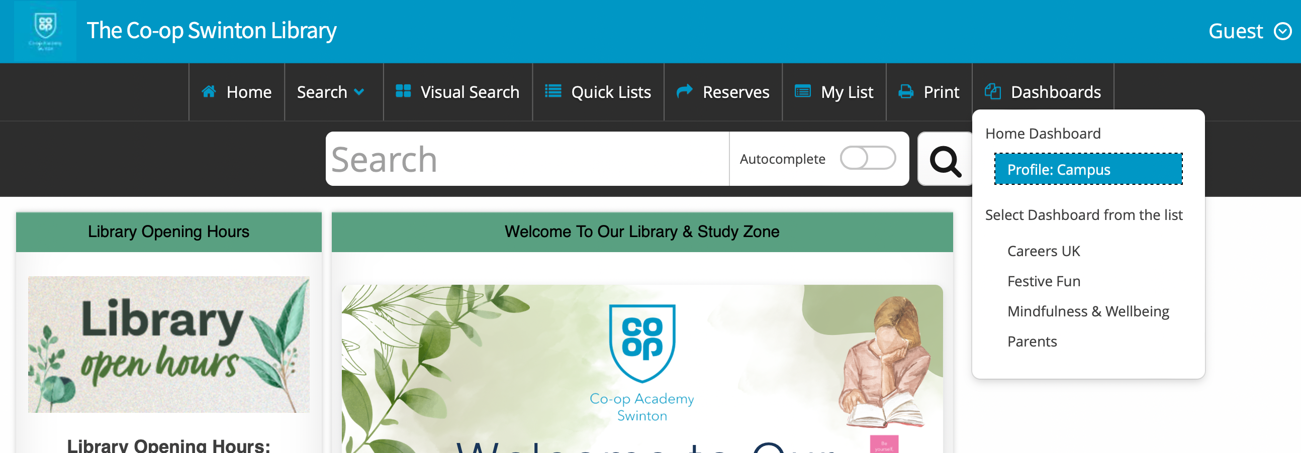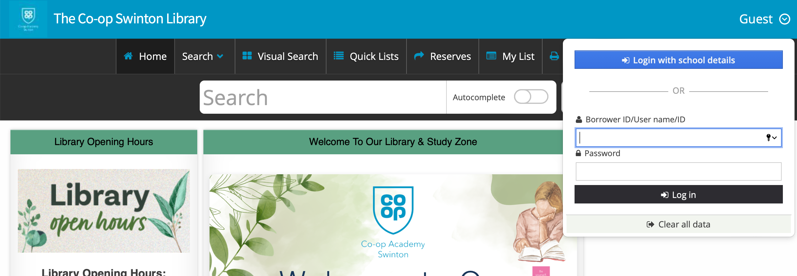 Parents will not need to log in via the homepage and will continue as a guest. You will be able to access the main library page and the parent page. These pages will have a range of information relating to school, homework, key dates and parent newsletters.