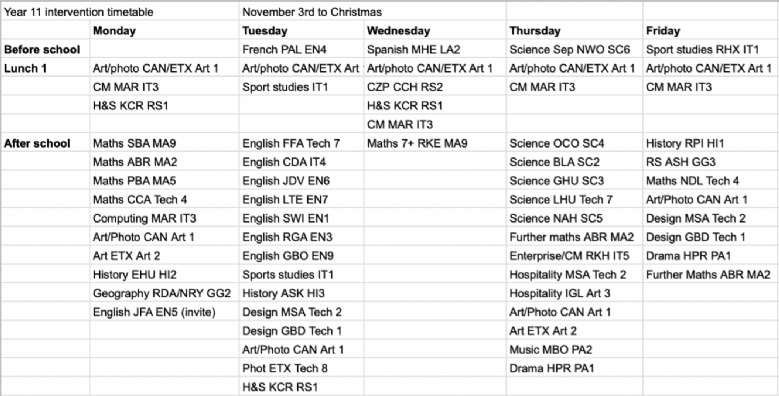 Please see the PDF below for a timetable of lunch time and after-school intervention sessions. Please encourage your child to attend.